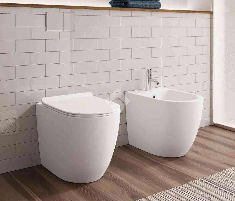 Sanitari sospesi o filo muro Flaminia – collezione LINK o equivalenti, colore bianco lucido.Piatto doccia effetto cemento (70x120 cm, spessore 4 cm) con soffione anticalcare diametro 20 cm.Rubinetterie Paffoni – collezione Stick.Composizione dell’immobile