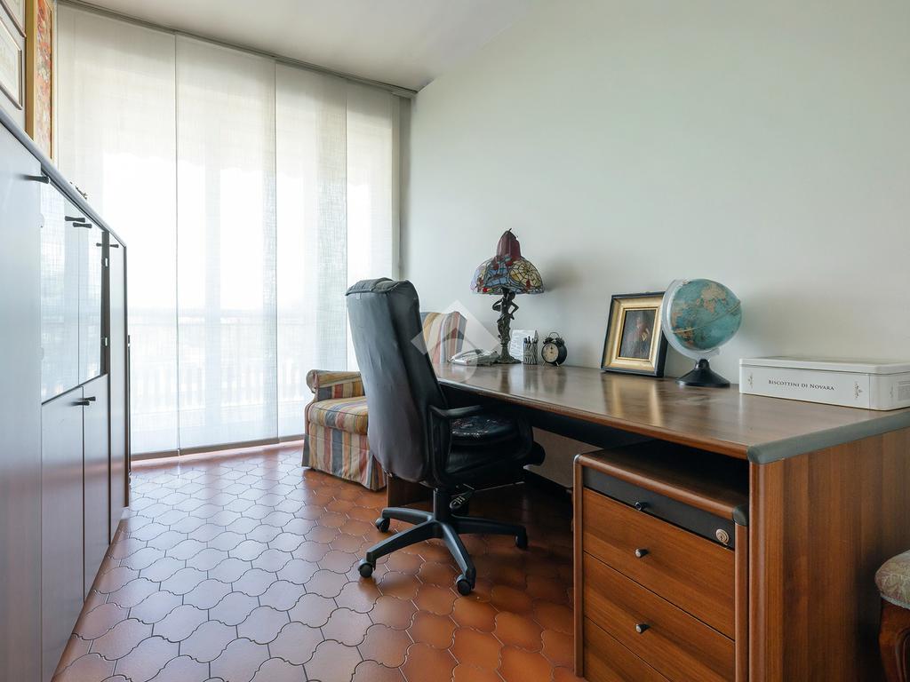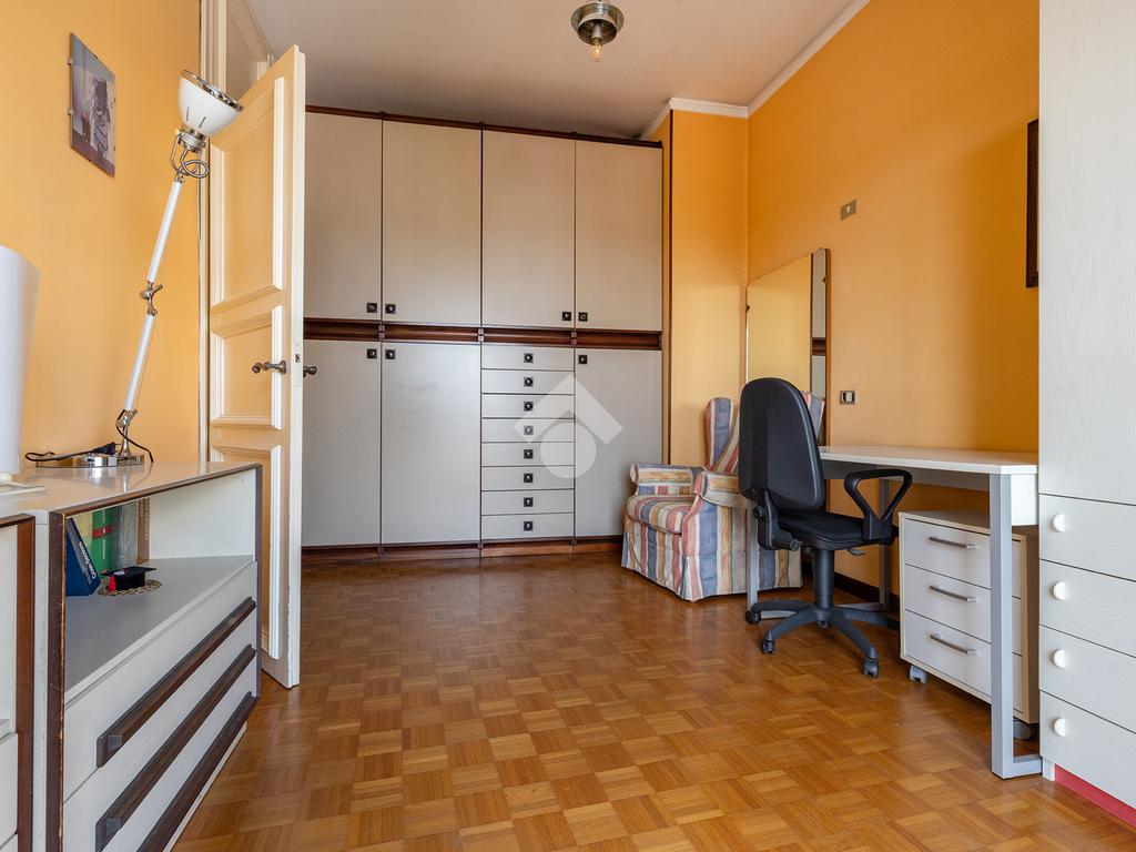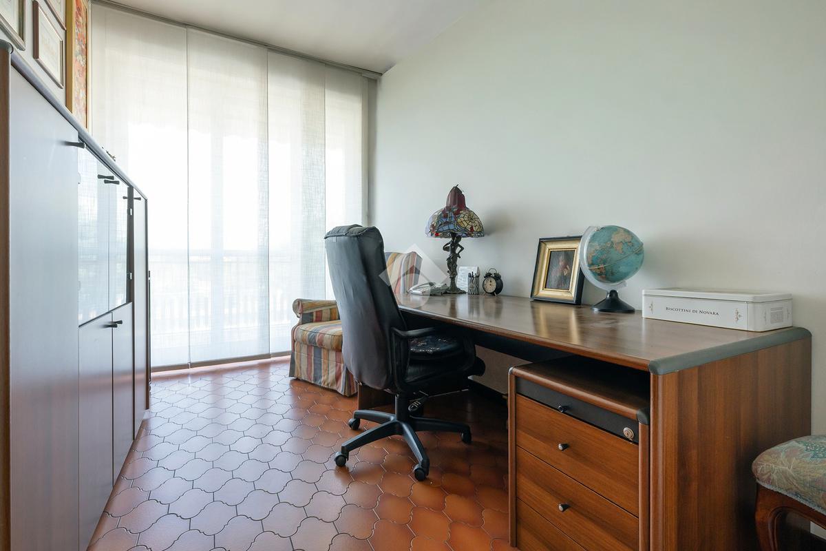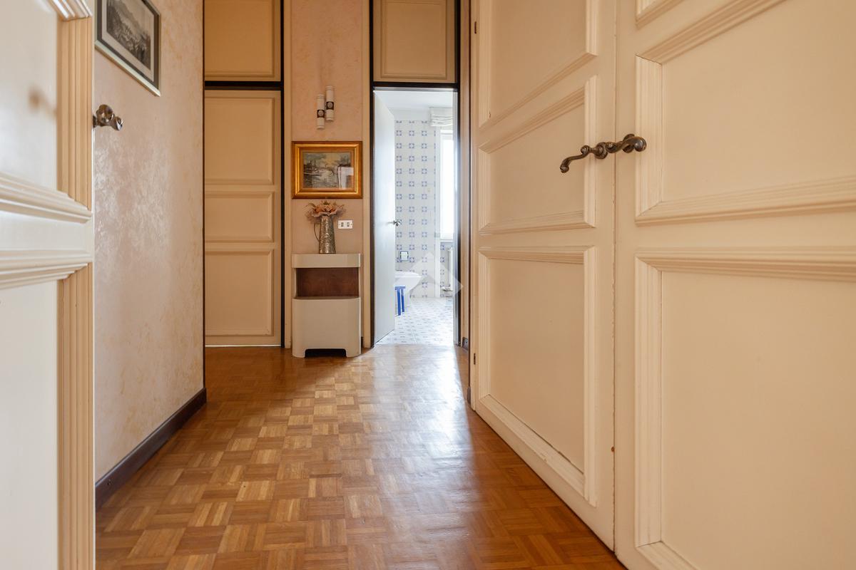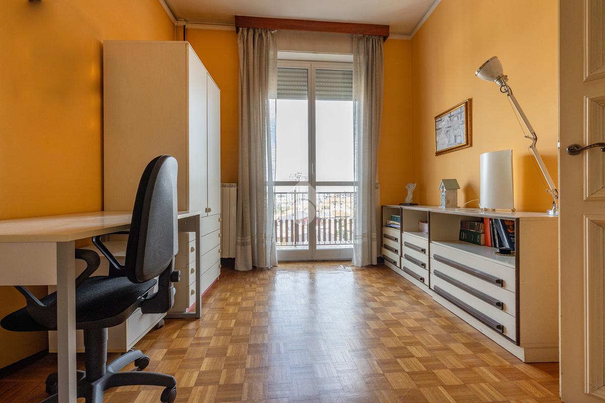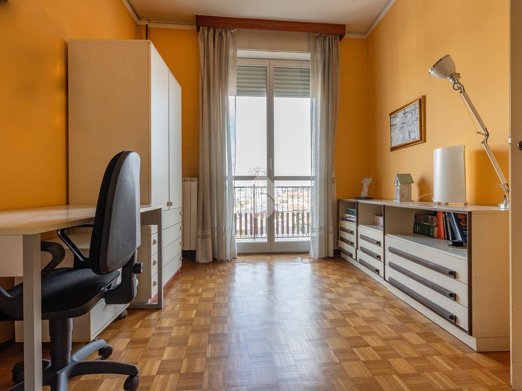 L’abitazione, già libera e pronta per essere abitata, si distingue per spazi generosi e una distribuzione funzionale. La luminosa zona giorno comprende un ampio soggiorno con terrazzino esposto a sud-est e una cucina separata ampia con un affaccio opposto. Dal disimpegno della zona giorno si accede al locale studio, anch’esso spazioso e con balcone. La zona notte offre tre camere da letto, due con uscita sui rispettivi balconi, due bagni entrambi con finestra e un paio di armadi a muro capienti.