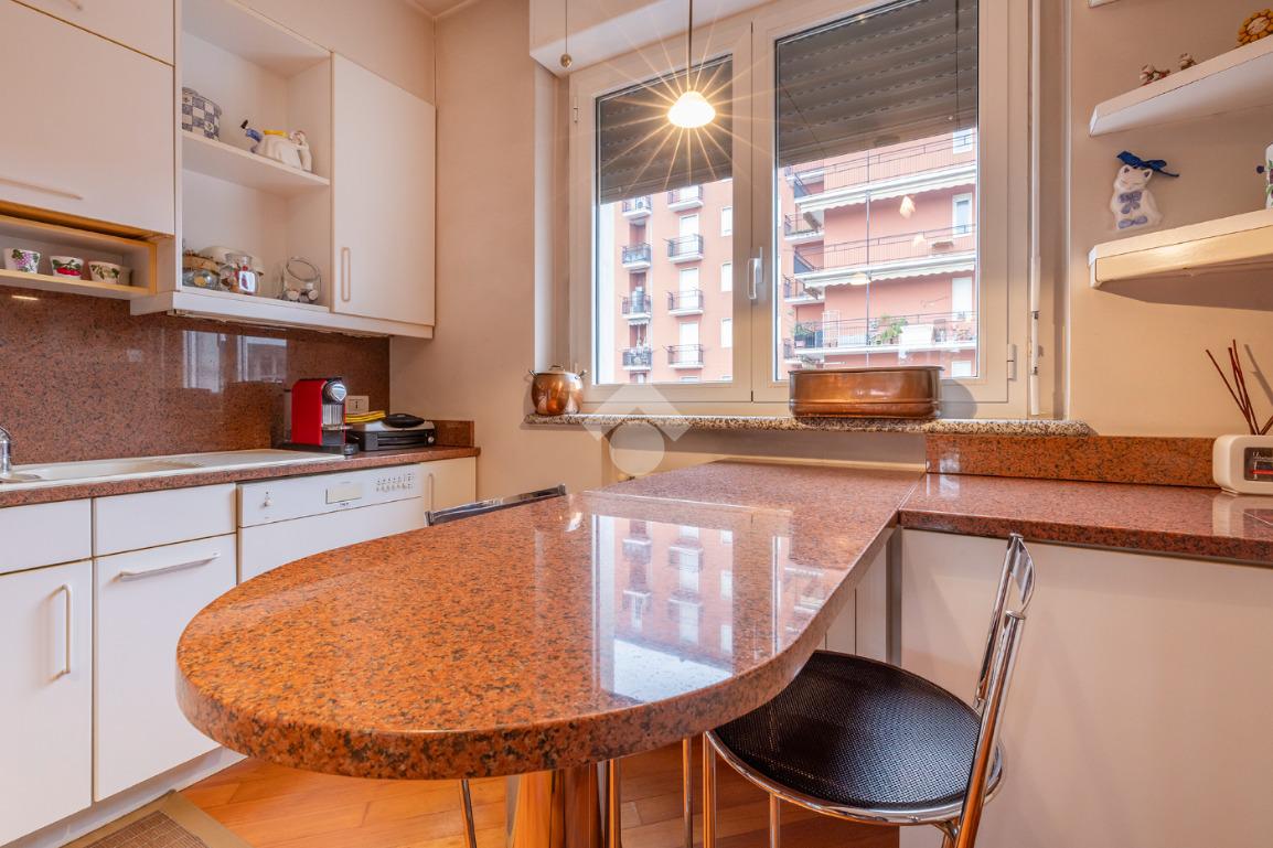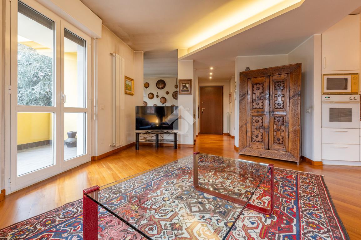 - La sala da pranzo esposta a Ovest, che condivide con il salotto un terrazzino coperto di oltre 10 mq, perfetto per cene all’aperto.
